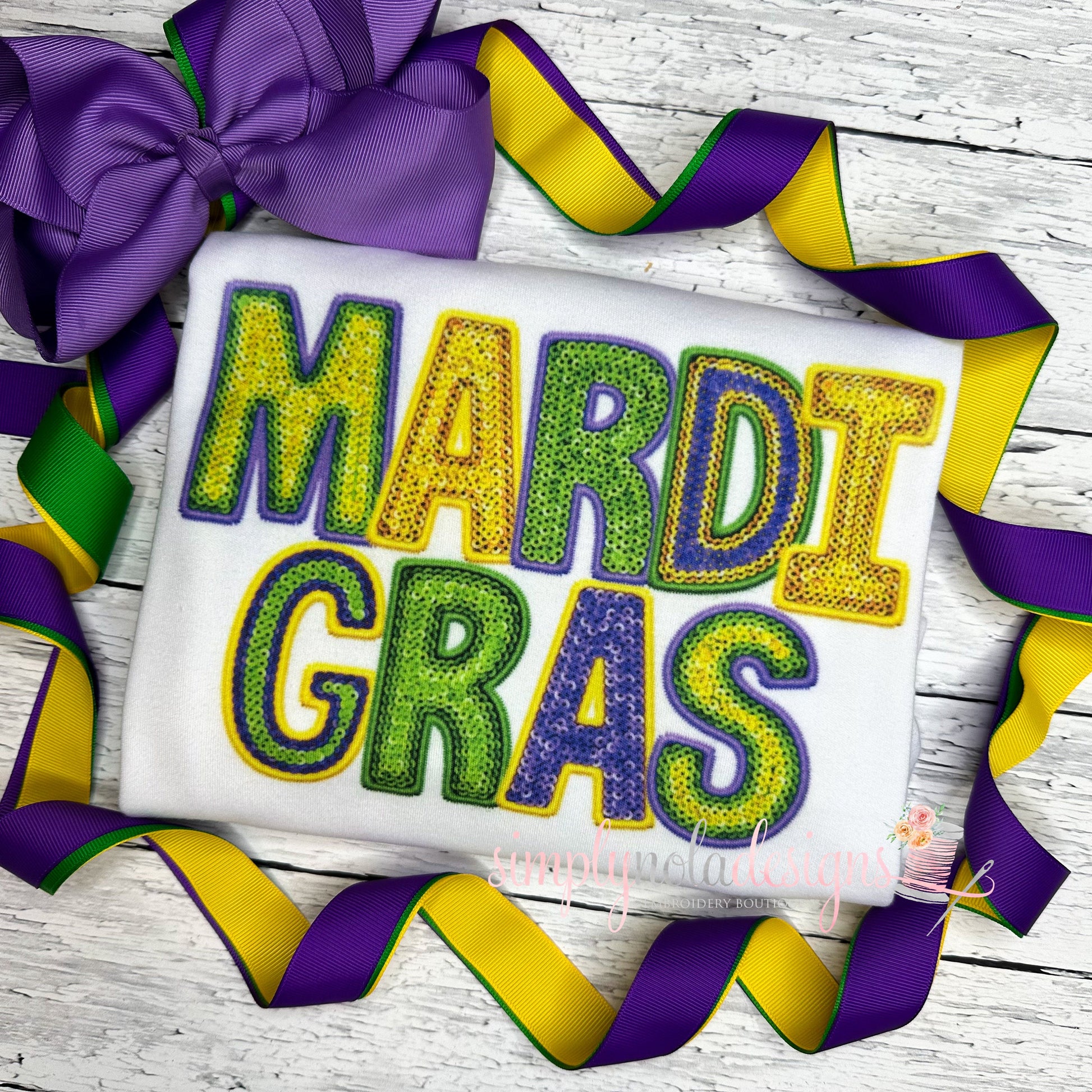Girls Faux Sequin Faux Embroidery Mardi Gras Shirt