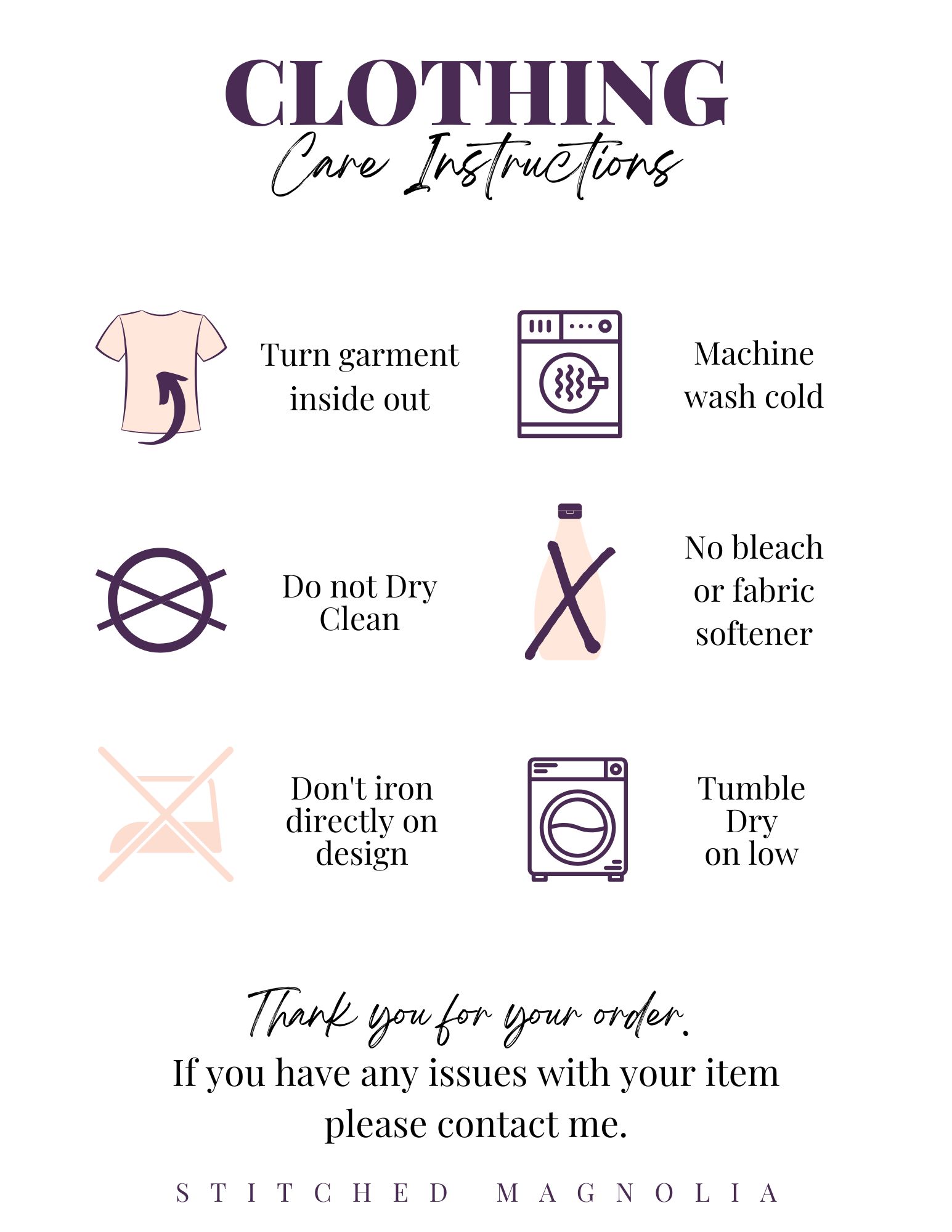 Machine wash cold. Inside out. Do not bleach. Tumble dry low or hang dry for best results.